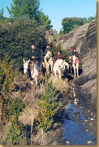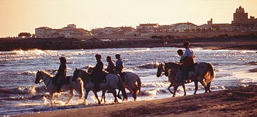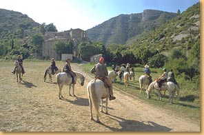 Excursion over the "Walls of History". 1 Week: A week on horseback in the silent and spacious Camargue, along medeval towns of the regions of Provence and Languedoc, exploring the relation of mankind, animal and nature around us. Beaches of finest sands, marshy countries, pinewood and dedacious forests, flowering valleys, antique remainings of Roman times and other occasions to spend an unforgettable time in the heart of the regions: Camargue - Provence, Languedoc and Parc Naturel des Cevennes.